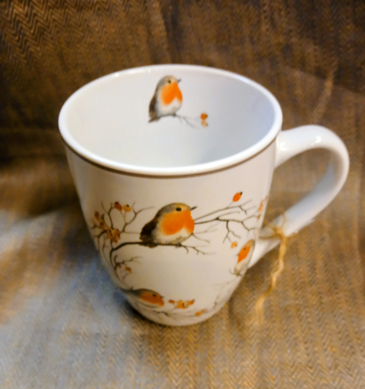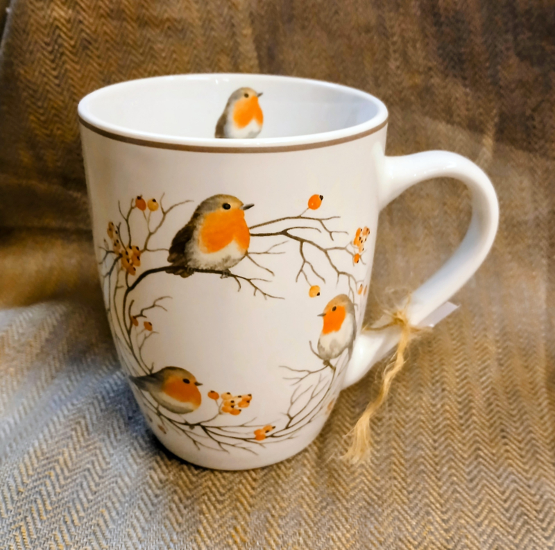 Elegante drinkmok met gouden randje. Maten 10*8 cm.