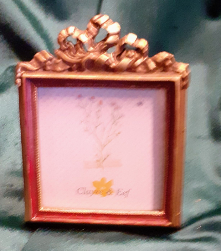 Mooi fotolijstje in goud en donkerrood voor foto van 7x7cm. Afmetingen fotolijstje 9x11cm.